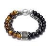 Natural Map Stone & Stainless Steel Men's Beaded Bracelet - Unique Fashion Jewelry