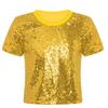 Lányok Csillogó Flitteres Crop Top Kerek Nyakkivágással és Rövid Ujjakkal Hip-Hop Tánckoszümhöz