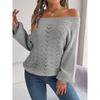 Fashion Off-the-shoulder Pullover Hollow Out Women Sweater Autumn Casual Knitted Tops Long Sleeve Loose Casual Solid Color One-word Collar Sweaters