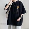 M-8XL Men Oversized Korean Fashion Loose American Vintage Carton Kitten Print Short Sleeve Versatile Trend Couple Outfit