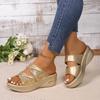 Cool slippers women's summer outer wear fashionable new thick-bottomed muffin wedge heel women's large-size fish mouth sequined women's slippers