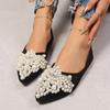 Spring new pointed flat-bottomed retro pearl rhinestone single shoes large size shoes 36-43