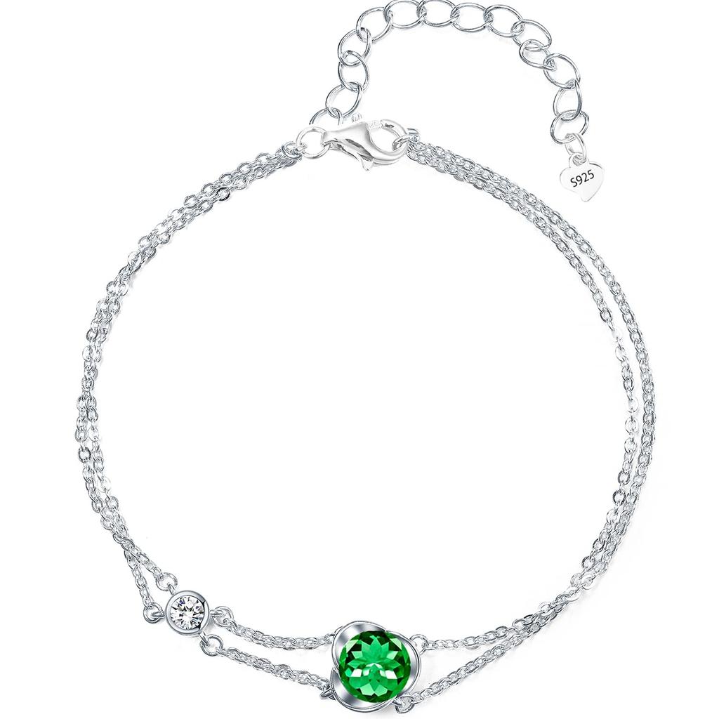 KIMIEVOL Emerald Bracelet with May Birthstone and Rose Flower Design in Sterling Perfect for White or Gift Wrapping Women's Silver. Day, Birthdays,