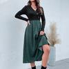 YYFS Női Divat Tavasz Ősz Pöttyös Nyomtatás Hosszú Ujjú V-nyakú Magas Derék Alkalmi Ruhák