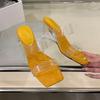 Fashion Fashion Transparent Heels Women Wedges Slippers Shoes Square Toe Ladies Heeled Sandals Slippers Shoes Female Slides Pumps