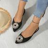Fashion Women Luxury Pearl Crystal Buckle Flock Flats Pointed Toe Dough Shoes Spongy Insole for Tender Feet Comfortable Walking Slip-On