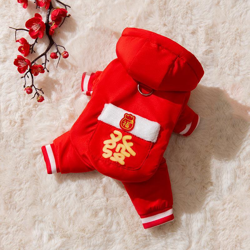 New Year's dog down teddy bear small dog four-legged blessing character can lead New Year's greetings and festive New Year's pet cotton-padded clothes