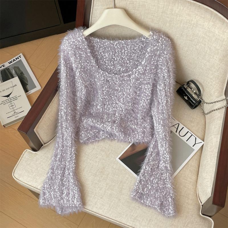 Light purple lazy wind soft waxy sweater women's autumn and winter versatile new plush small short knitted sweater top