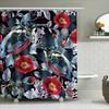 Természet ihlette fürdőszobai dekoráció Virágos madaras zuhanyfüggöny fürdőszobába Vízálló szövet fekete háttérrel (Méret 72x84)