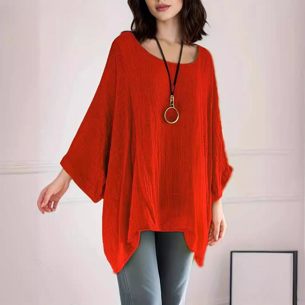 Női póló Közepes ujjú Egyszínű Alkalmi Laza Denevérszárnyú ujjú Kerek nyakkivágású Póló Női Szexi Plus Size Felső