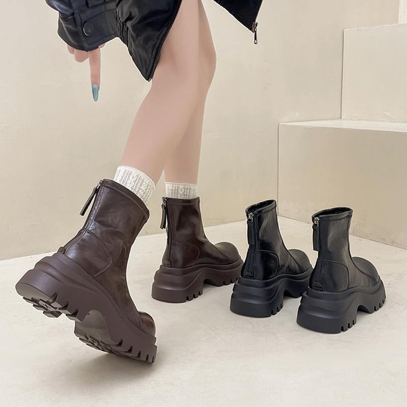 Retro British leather boots thick-soled Martin boots women's autumn and winter fashion versatile and comfortable heightening medium heel short boots