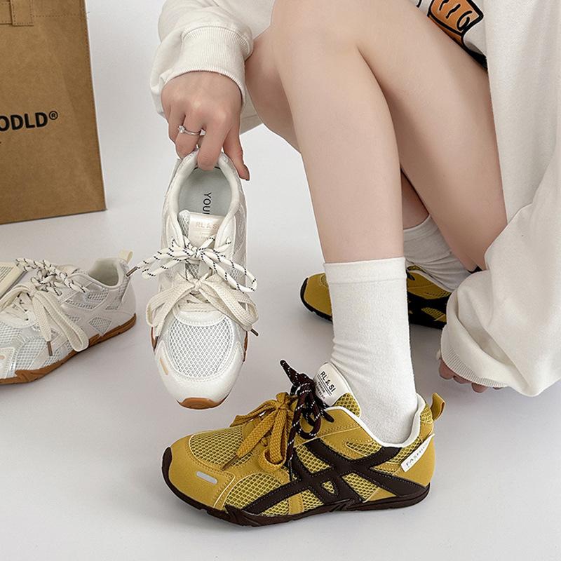 2025 new summer retro splicing mesh lace-up German training shoes women's sports flat-bottomed versatile breathable casual board shoes