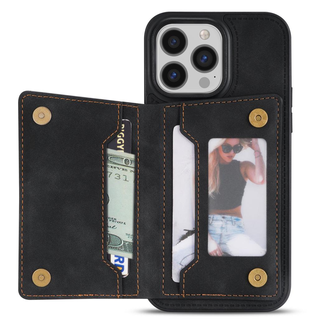 For iPhone 16 Pro Case Zipper Pocket Wallet Kickstand Phone Guard Cover