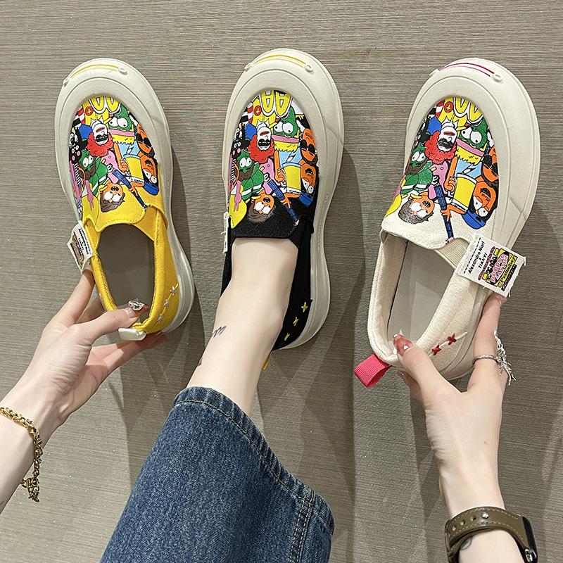 Fashion Cartoon print Women Platform Vulcanized Shoes Woman Thick Sole Canvas Loafers Fashion Graffiti Sneakers Flats Sports Shoes
