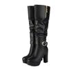 Női magas sarkú csizma őszi-téli új vízálló asztali vastagsarkú nagy méretű közepes csizma