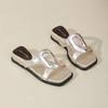 Divat 2025 Új Ék Sarok Női Papucsok Tömör Fém Díszítés Női Papucsok Elegáns Ruha Szandál Női Strand Nyári Cipők