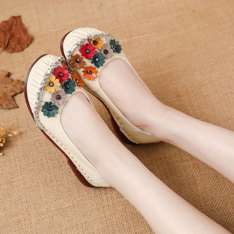 Fashion New Summer Genuine Leather Ballet Flats Women's Flower Loafers Ladies Moccasins Shallow Daily Shoes Woman Flattie Slip On Shoes