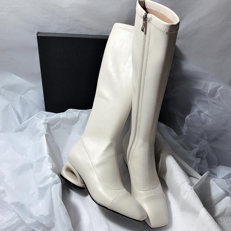 Fashion Vintage Low Heel Woman Knee High Boots Shoes Fashion Ladies Elegant Square Toe Knight Booties