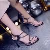 Fashion Big Size Shoes Woman Transparent Stiletto Bling Bling Roman Style Navy Blue Pumps Sexy Heels Sandals Ladies Large Fine Crystal