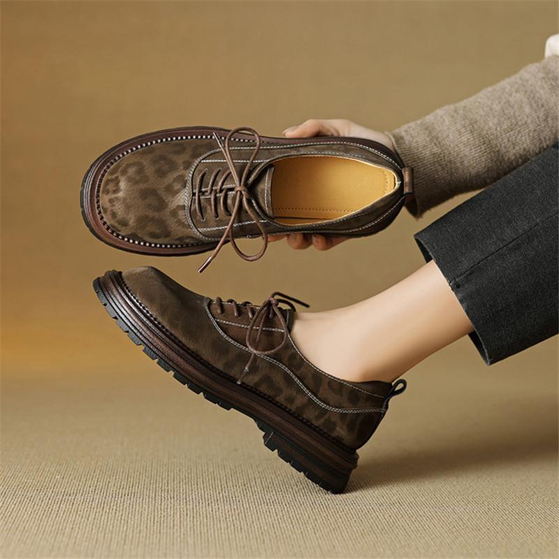 Fashion New Spring Genuine Leather Shoes for Women Fashion Leopard Print Round Toe Women Pumps Shoes Chunky Heels Loafers Platform Shoes