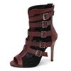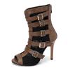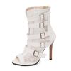 Fashion Peep Toe Summer Shoes Woman Sandals Hollow Lace mesh Gladiator Ankle Boots Zip Thin High Heels Jazz Dance Shoes Female Size34-48