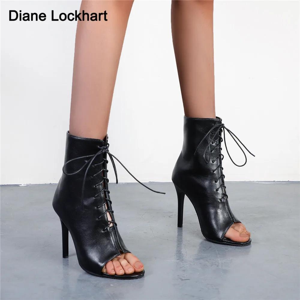 Fashion Women Fashion Summer Boots Open Toe high heels Sandals Gladiator Lace-Up Casual 10CM Stiletto heel Party Ankle boots 32-43 Black