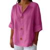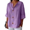 2025 Women's Loose V-neck Cotton Linen Button Top - Comfortable Casual T-shirt for Spring and Autumn