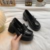 Black British style platform thick high-heeled small leather shoes women's 2025 new autumn skirt retro heightening loafers