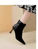 Francia kisméretű illatos stílus őszi és téli rövid csizmák magas sarkú Chelsea csizmák vékony csizmák vékony sarok hegyes orr meztelen bársony és meztelen csizmák