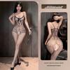 Ji Yuqing Kísértés Body: Szexi fehérnemű harisnyával, nyitott ülepű, kivágott dizájn - Nem levehető body.