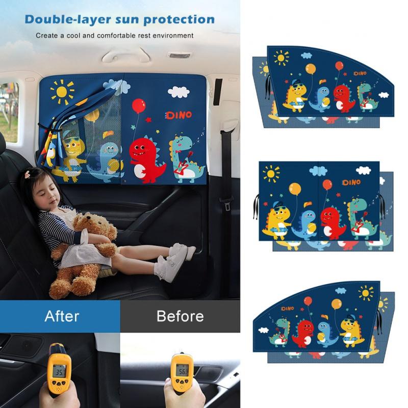 2 Layers Telescopic Car Window Shades for Kids with Magnetic Mosquito Net UV Protection Sunshade Block Mesh Curtain Sun Cover