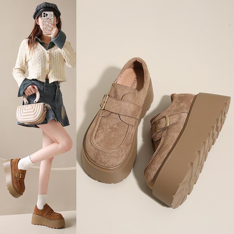 All-inclusive spring 2025 new British style small leather shoes retro fashion platform muffin sole casual Boken single shoes