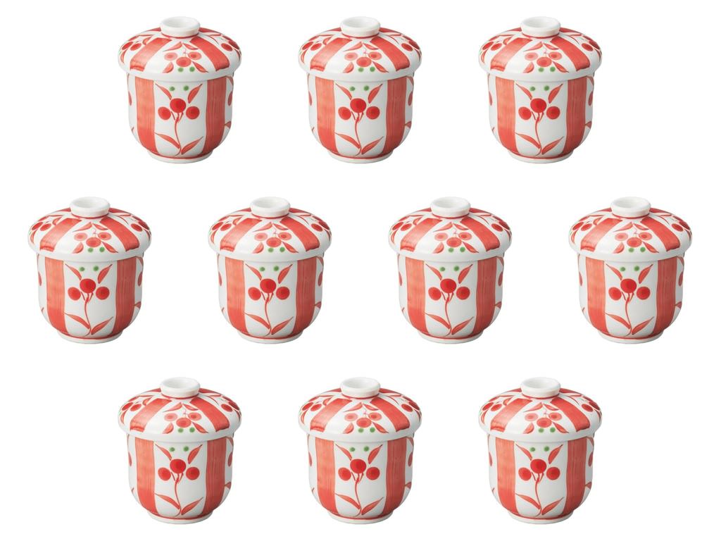 Set of 10 Red Tachibana Small Steamed Bowls x Mini Steamed Bowls Setomonohonpo [6.5 8.5 cm]