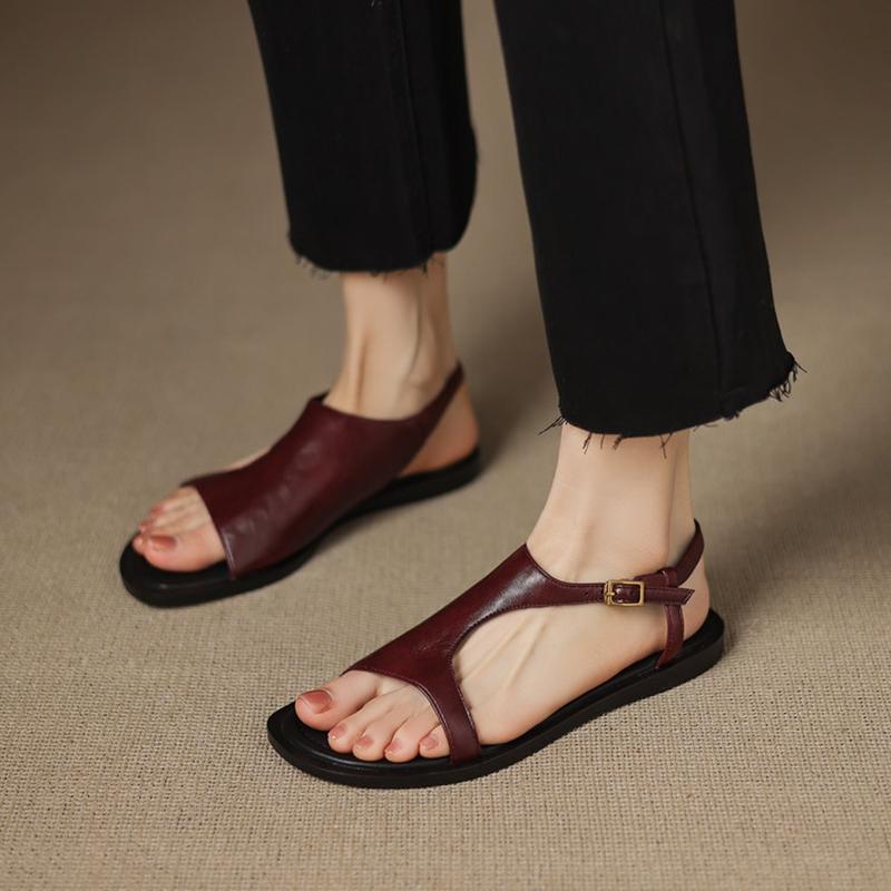 Fashion NEW Summer Women Sandals Split Leather Shoes for Women Open Toe Low Heel Shoes Concise Gladiator Sandals Retro Handmade Shoes