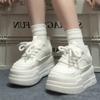 White sneakers women's spring and autumn muffin thick-soled white shoes round head lace-up breadboard shoes heightening casual shoes children