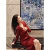 Autumn women's clothing new red bridal toast engagement dress dress high-end light luxury niche