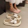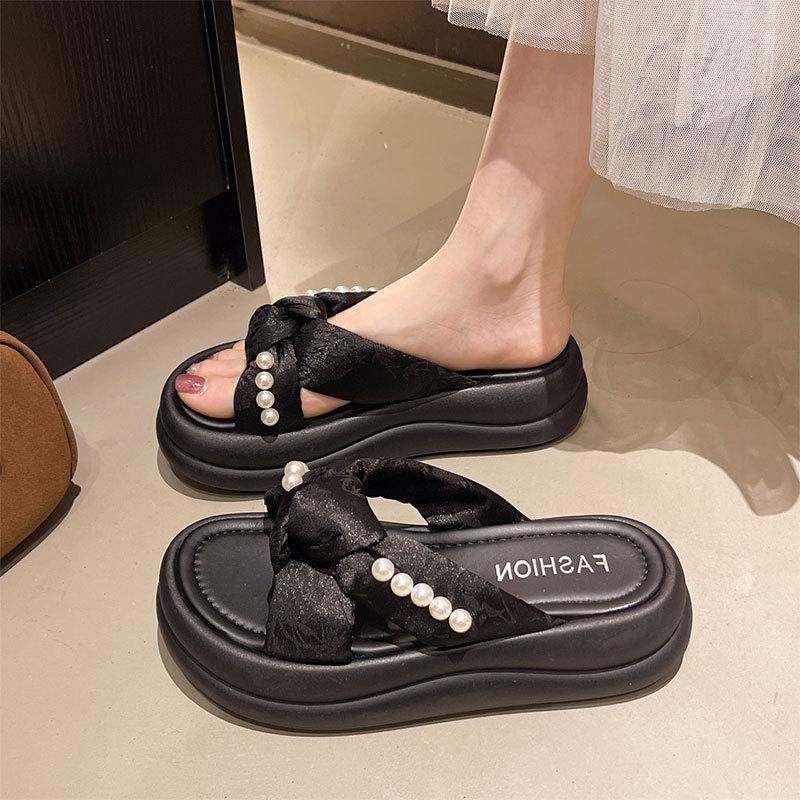 Internet celebrity retro pearl national style slippers women's summer 2025 new wear thick bottom stepping on shit feeling one word sandals casual