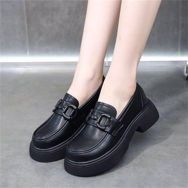 2025 new middle heel versatile four-season single shoes women's summer British style small leather shoes thick-soled soft leather soft-soled loafers