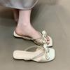 Fashion summer French retro bow open-toed slippers women's rhinestone sweet cool slippers low heel versatile one-word drag