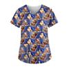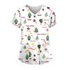 Women's Christmas Printing Short Sleeve V-neck Tops Working Pocket Blouse Shirts Uniform