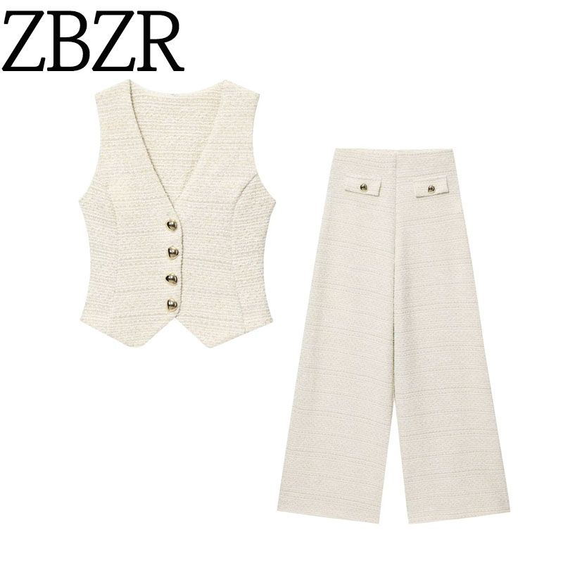 Za Autumn and Winter New Arrivals Women's Clothing Zr European and American Style V-Neck Sleeveless Button Textured Vest Pants 5039215