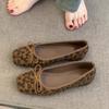 Korean version of square head leopard print single shoes women's autumn 2025 explosion French bow with skirt ballet evening shoes