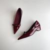 Sheepskin version~ pointed inner height increase Mary Jane shoes French temperament bow with skirt light mouth wedge heel single shoes women