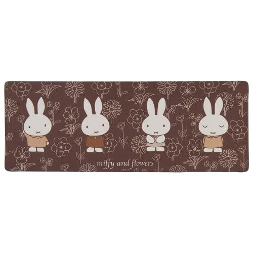 Senko Miffy Line Art Wipeable PVC Kitchen Mat, Approx. 45 x 120 cm, Brown, Character Animal Design, Miffy 72091