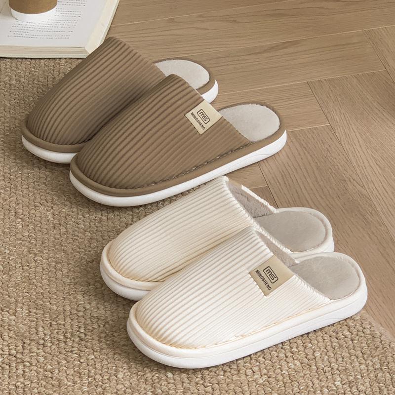 Light luxury striped cotton slippers autumn and winter indoor home velvet warm couple floor waterproof and non-slip slippers