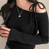 Vállat szabadon hagyó kötött pulóver nőknek őszre és télre, új, réspiaci dizájn pikáns lányos stílussal, karcsúsító és elegáns, sokoldalú felső