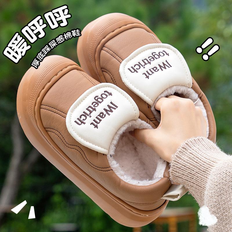 Waterproof cotton slippers, super warm thick-soled non-slip velvet warm and fashionable leather bag head cotton shoes for winter wear