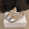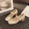 French thick heel single shoes women's 2025 new versatile skirt Mary Jane shoes ballet square head small leather shoes