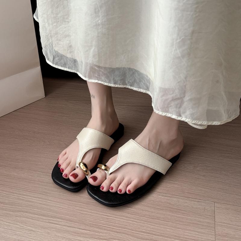 Korean version of fashion toe flat slippers women's summer wear 2025 new niche casual beach soft bottom flip-flops