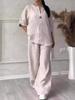 2025 European & American Women's Casual Cotton Linen Loose Top & Wide-Leg Pants Set